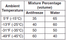 - Do not use a solution that contains more than 60% antifreeze or less than 35% antifreeze, which would reduce the effectiveness of the solution.